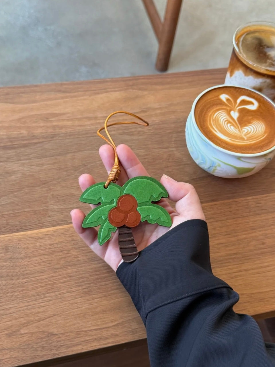 Handmade Leather Palm Tree Bag Charm – Tropical Coconut Keychain Gift